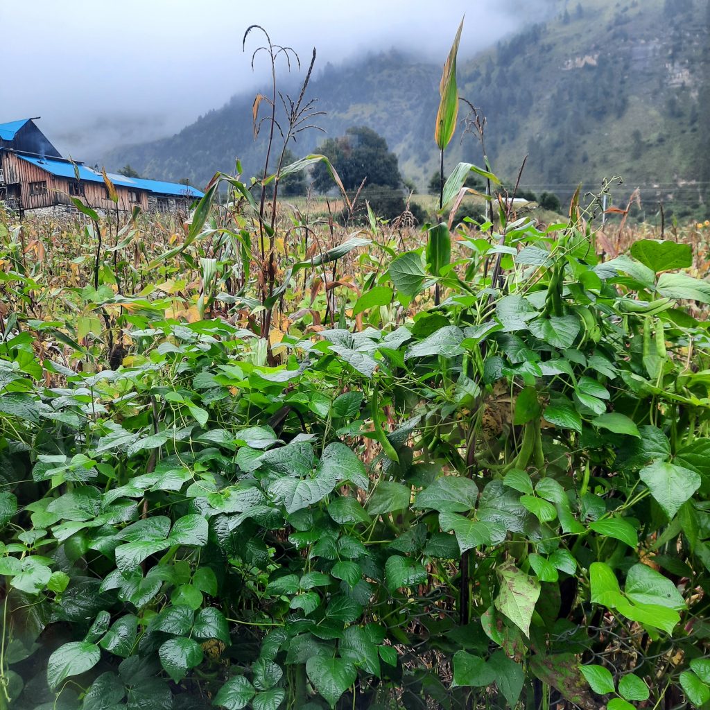 Das Curry wird dann entweder zum typischen Dhal Bhat oder einfach zu „Plain Rice“ gereicht. Es wird alles frisch verkocht. Das ist „just amazing“. Am Abend und zum Mittagessen werden alle Zutaten frisch geerntet, geschnippelt und dann gebraten, in Öl frittiert oder einfach gekocht. Je nachdem, was man bestellt. Ehrlich, das ist besser als das, was wir in Deutschland unter „Bio“ und „organic“ handeln.