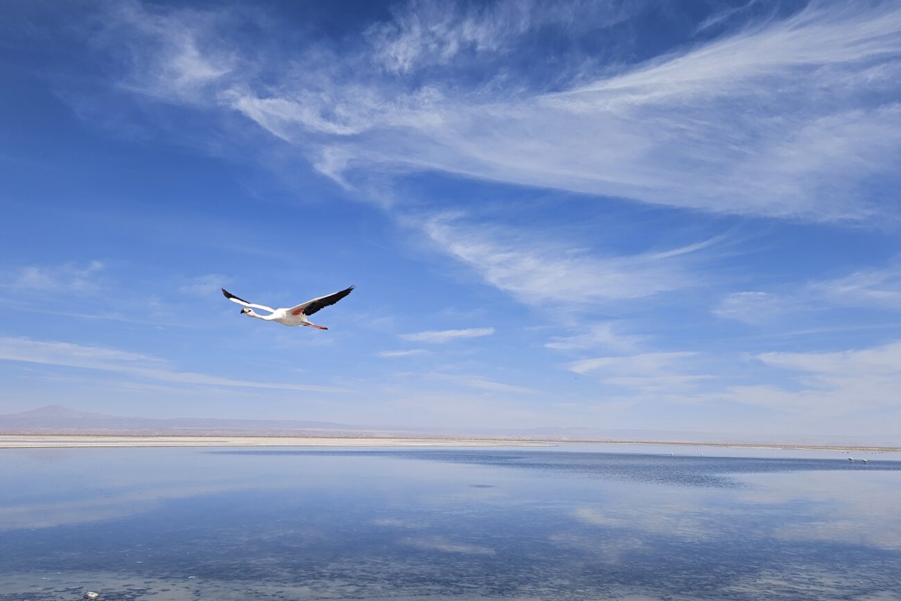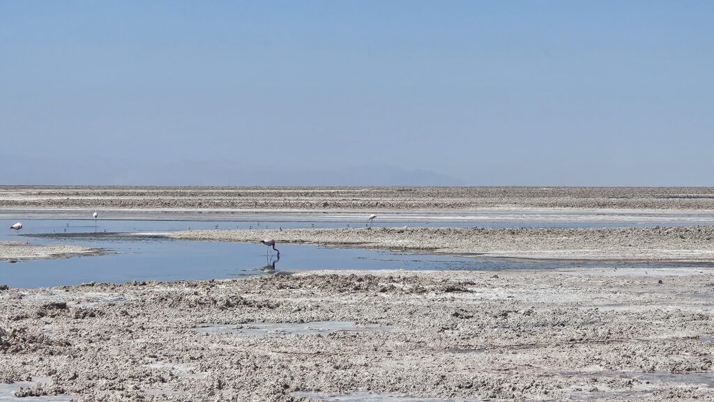 Der Rundgang dauert – wenn man langsam geht – 45 – 60 Minuten und führt vorbei an den Lagunen, wo die Flamingos ihre Shrimps essen. In Chile gibt es 3 Arten von Flamingos: Chilean, Andean and James Flamingos. Die einen mit schwarzem Schwanz, die anderen mit rosa-farbenem Schwanz. Und James… haben wir nicht gesehen 🙂
