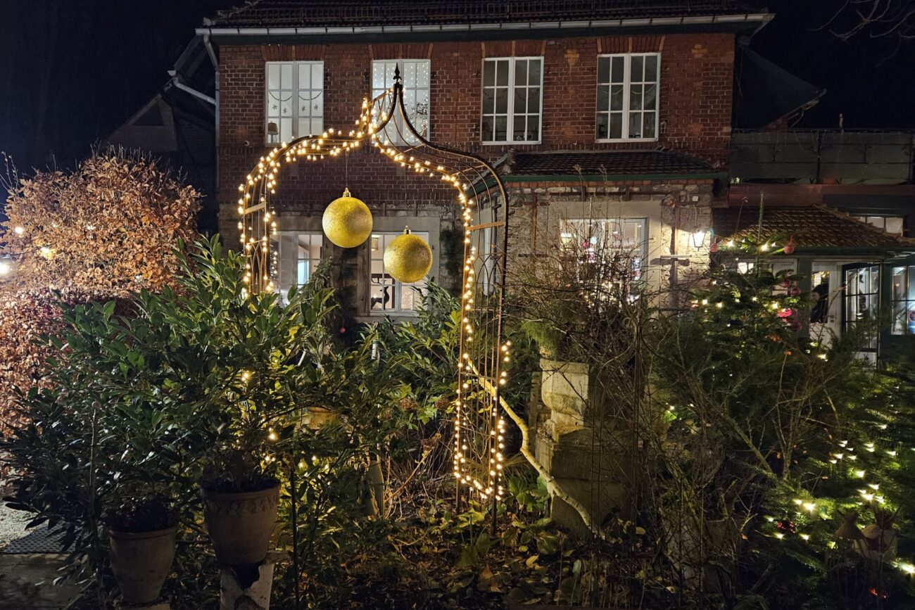 Der Abend beginnt: Ich stehe unten am Hamburger Berg 5 in Erfurt und höre schon italienische Musik aus der Bachstelze. Einladende warme Lichter und bunte Laternen versprühen eine hyggelige Atmosphäre. Unter der riesigen Kastanie stehen Gartenstühle und Tische, auf denen kleine weihnachtliche Accessoires die harmonische Stimmung intensivierten. ALOHA in der Bachstelze!